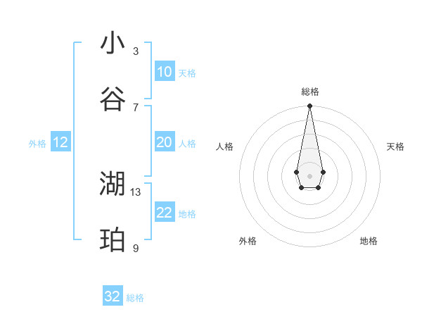 小谷 湖珀さんを姓名の画数から五運を鑑定