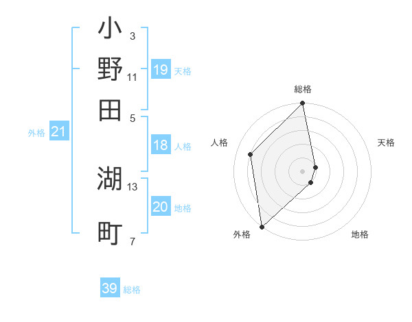 小野田 湖町さんを姓名の画数から五運を鑑定
