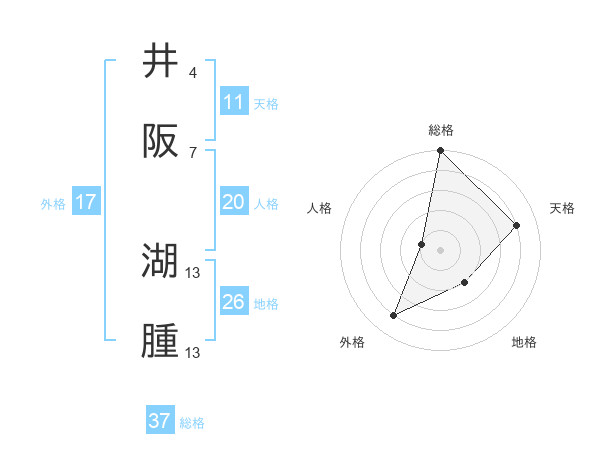井阪 湖腫さんの総格は37画の5点!