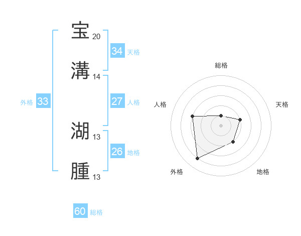 宝溝 湖腫さんの総格は60画の1点!