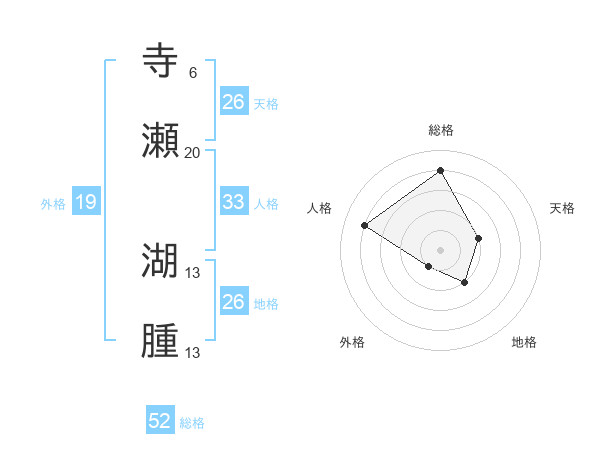 寺瀬 湖腫さんの総格は52画の4点!