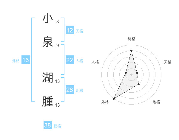 小泉 湖腫さんを姓名の画数から五運を鑑定