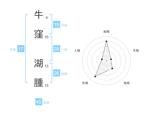 牛窪 湖腫さんの総格は45画の4点!