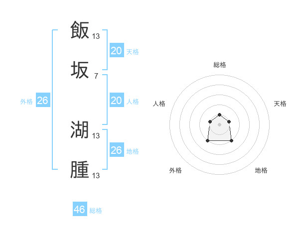飯坂 湖腫さんの総格は46画の1点!