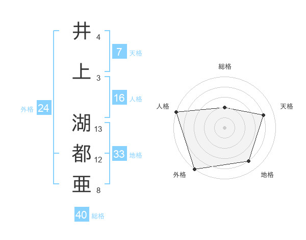 井上 湖都亜さんを姓名の画数から五運を鑑定
