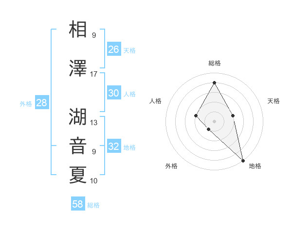 相澤 湖音夏さんを姓名の画数から五運を鑑定