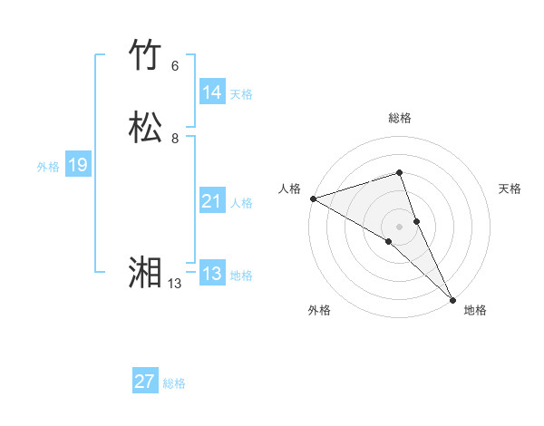 竹松 湘さんの総格は27画の3点!