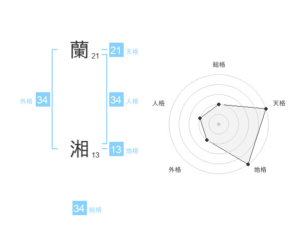 蘭 湘さんの総格は34画の2点!