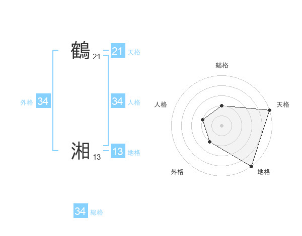 鶴 湘さんの総格は34画の2点!