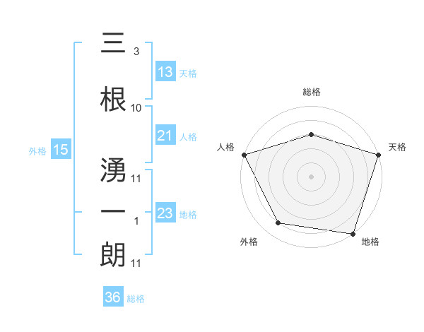 三根 湧一朗さんの天格は13画の5点!