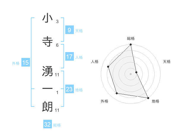 小寺 湧一朗さんの総格は32画の5点!