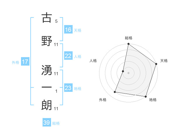 古野 湧一朗さんを姓名の画数から五運を鑑定