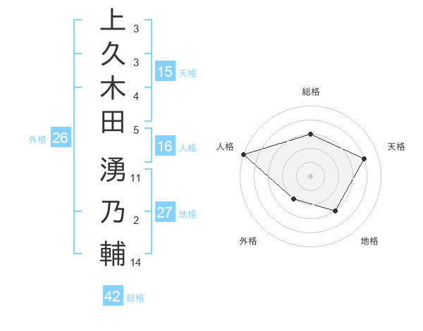上久木田 湧乃輔さんを姓名の画数から五運を鑑定