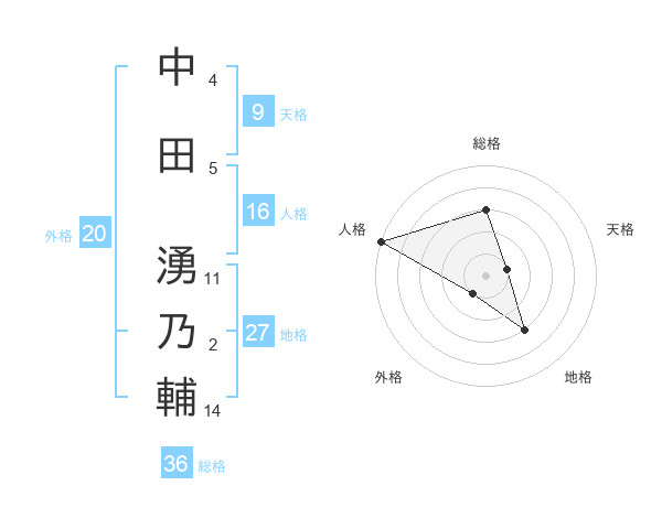 中田 湧乃輔さんを姓名の画数から五運を鑑定