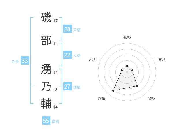 磯部 湧乃輔さんの総格は55画の1点!