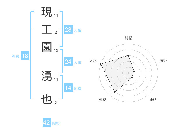 現王園 湧也さんの総格は42画の3点!