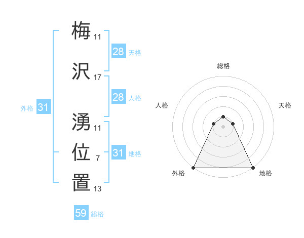 梅沢 湧位置さんを姓名の画数から五運を鑑定