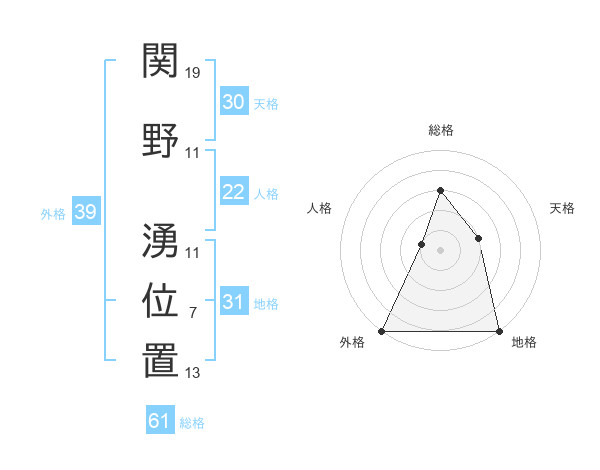 関野 湧位置さんを姓名の画数から五運を鑑定