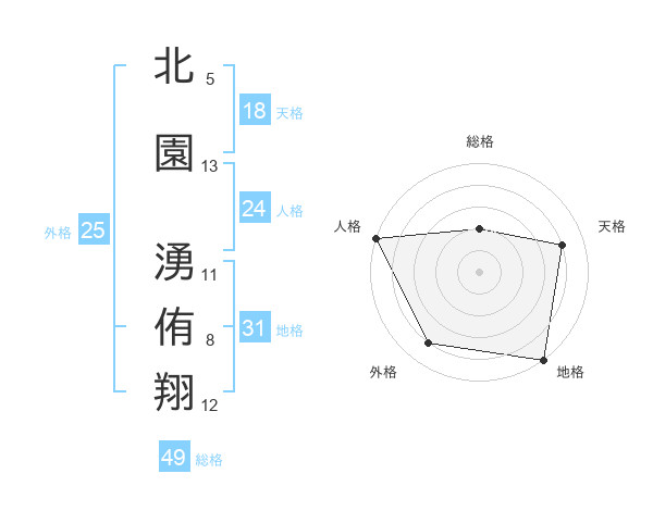 北園 湧侑翔さんを姓名の画数から五運を鑑定