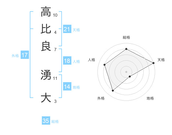 高比良 湧大さんを姓名の画数から五運を鑑定