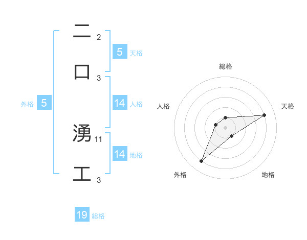 二口 湧工さんの天格は5画の4点!