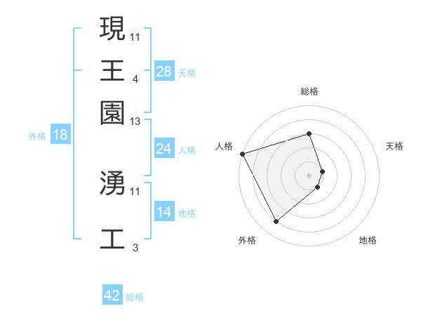 現王園 湧工さんの総格は42画の3点!
