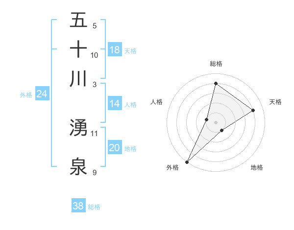 五十川 湧泉さんの総格は38画の4点!