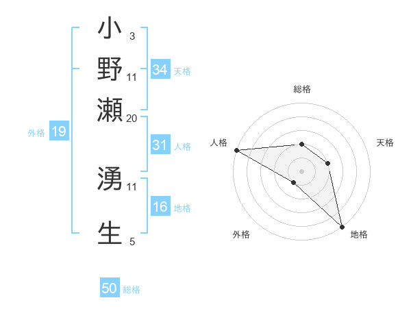 小野瀬 湧生さんの総格は50画の2点!