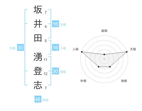坂井田 湧登志さんを姓名の画数から五運を鑑定