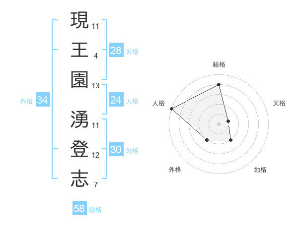 現王園 湧登志さんの総格は58画の4点!