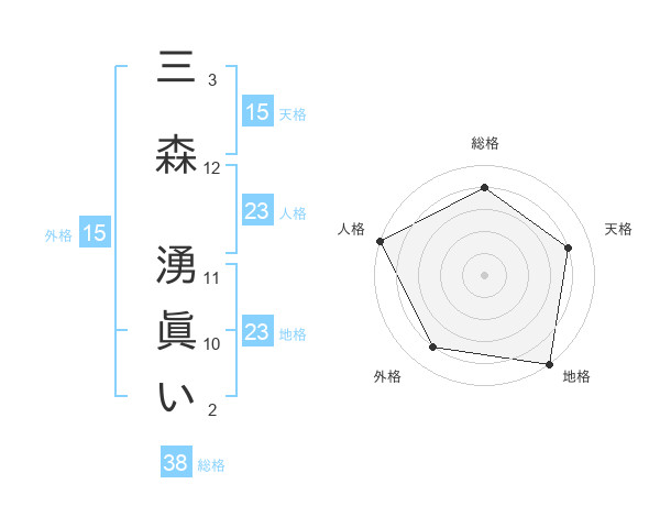 三森 湧眞いさんの総格は38画の4点!