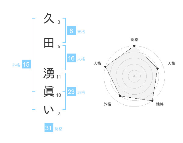 久田 湧眞いさんを姓名の画数から五運を鑑定
