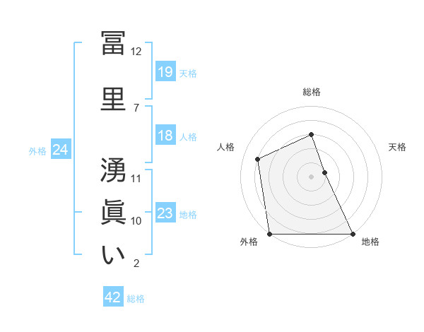 冨里 湧眞いさんを姓名の画数から五運を鑑定