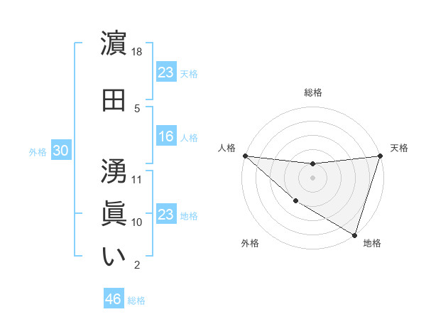 濵田 湧眞いさんを姓名の画数から五運を鑑定