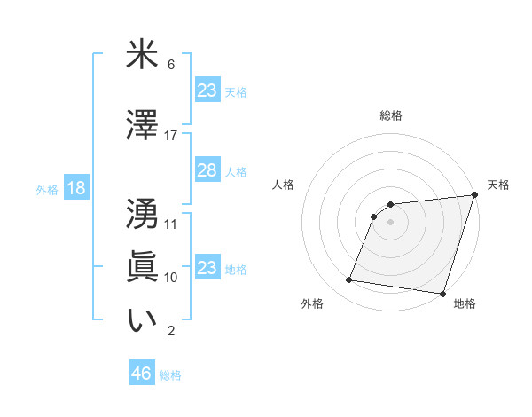 米澤 湧眞いさんの地格は23画の5点!