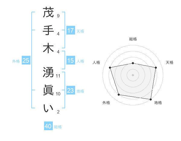 茂手木 湧眞いさんを姓名の画数から五運を鑑定