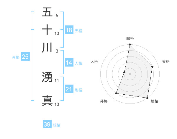 五十川 湧真さんを姓名の画数から五運を鑑定