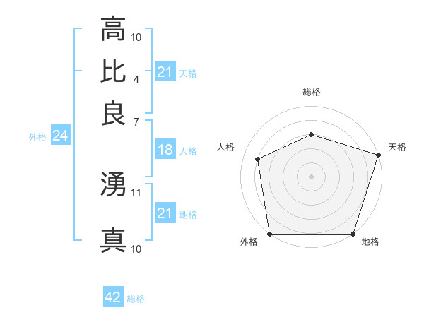 高比良 湧真さんの天格は21画の5点!