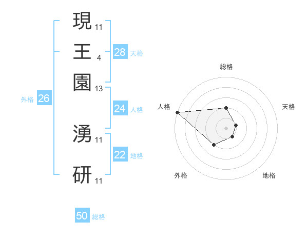 現王園 湧研さんを姓名の画数から五運を鑑定
