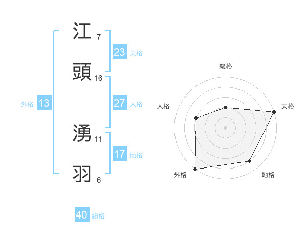 江頭 湧羽さんを姓名の画数から五運を鑑定