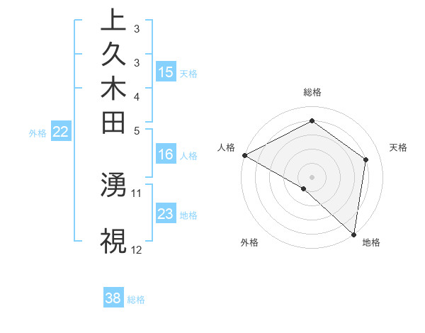 上久木田 湧視さんを姓名の画数から五運を鑑定