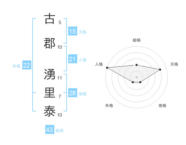 古郡 湧里泰さんを姓名の画数から五運を鑑定