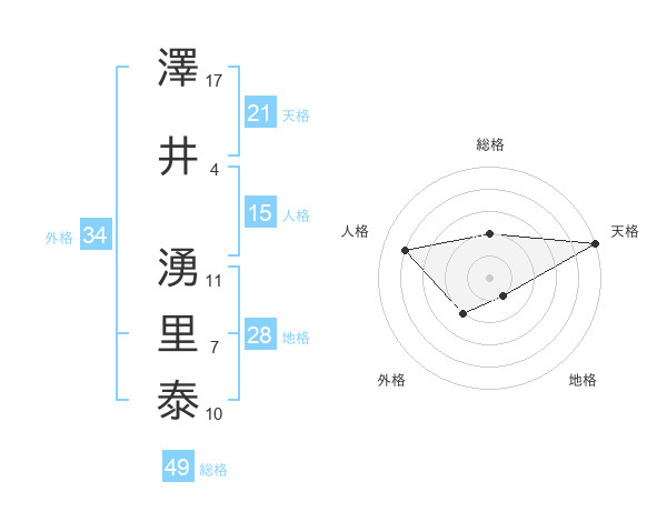 澤井 湧里泰さんの総格は49画の2点