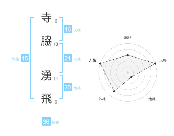 寺脇 湧飛さんを姓名の画数から五運を鑑定