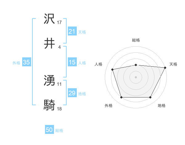 沢井 湧騎さんを姓名の画数から五運を鑑定