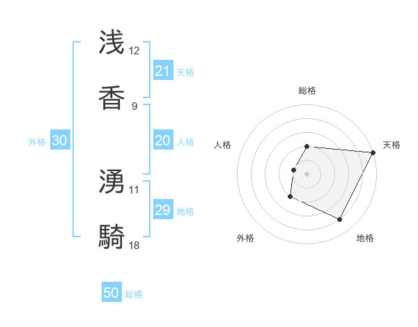 浅香 湧騎さんを姓名の画数から五運を鑑定