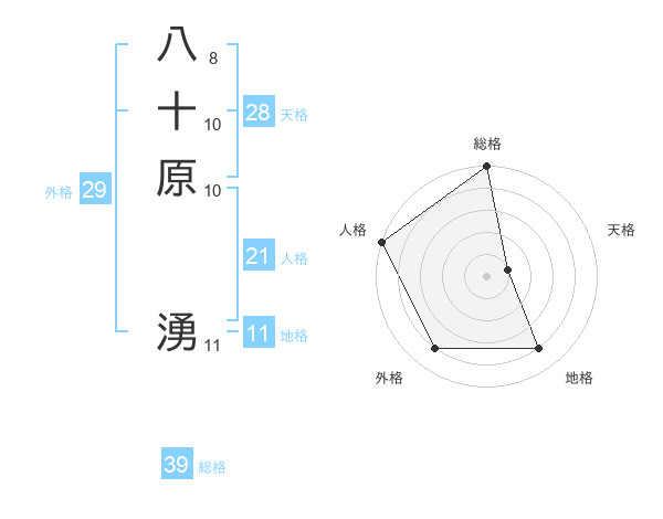 八十原 湧さんの総格は39画の5点!