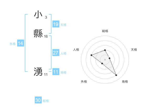 小縣 湧さんの天格は19画の1点!