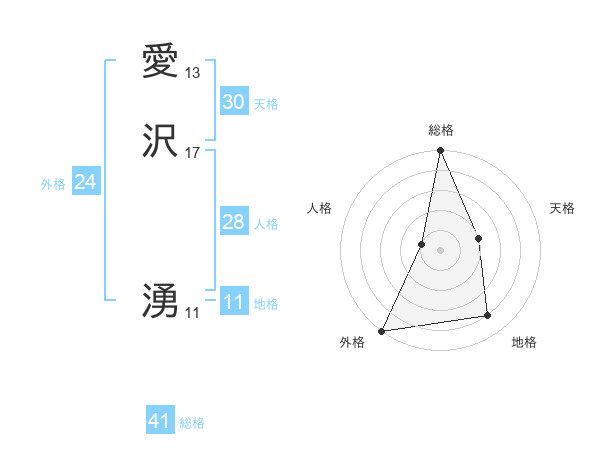愛沢 湧さんを姓名の画数から五運を鑑定