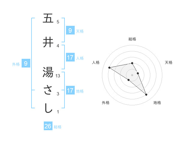 五井 湯さしさんの地格は17画の4点!